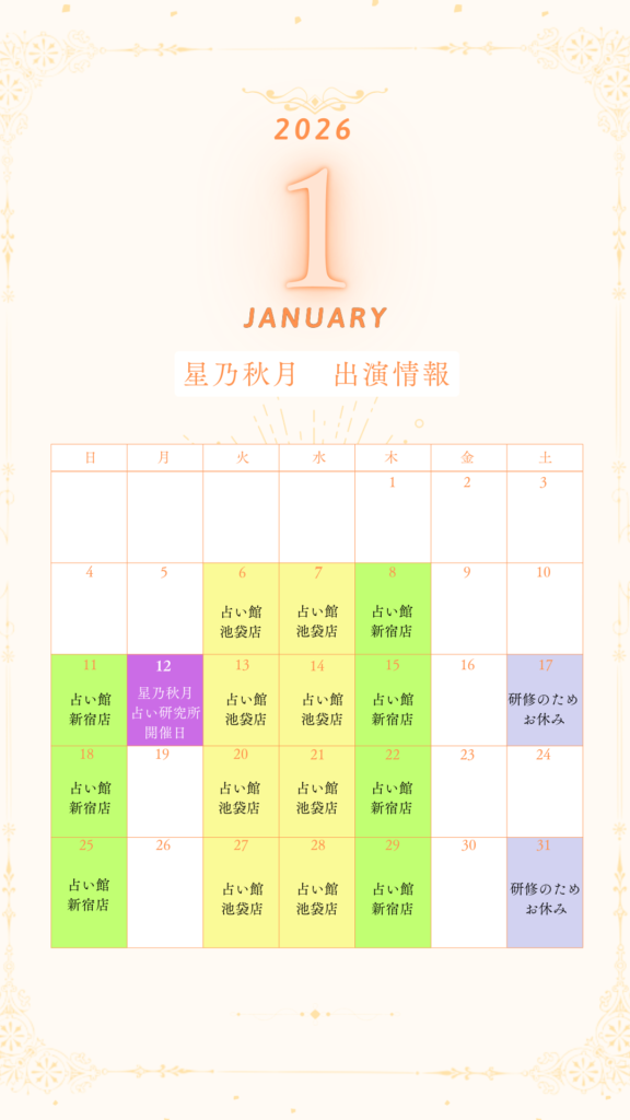 ・池袋(火・水)新宿(木・日)占い館に出ております。