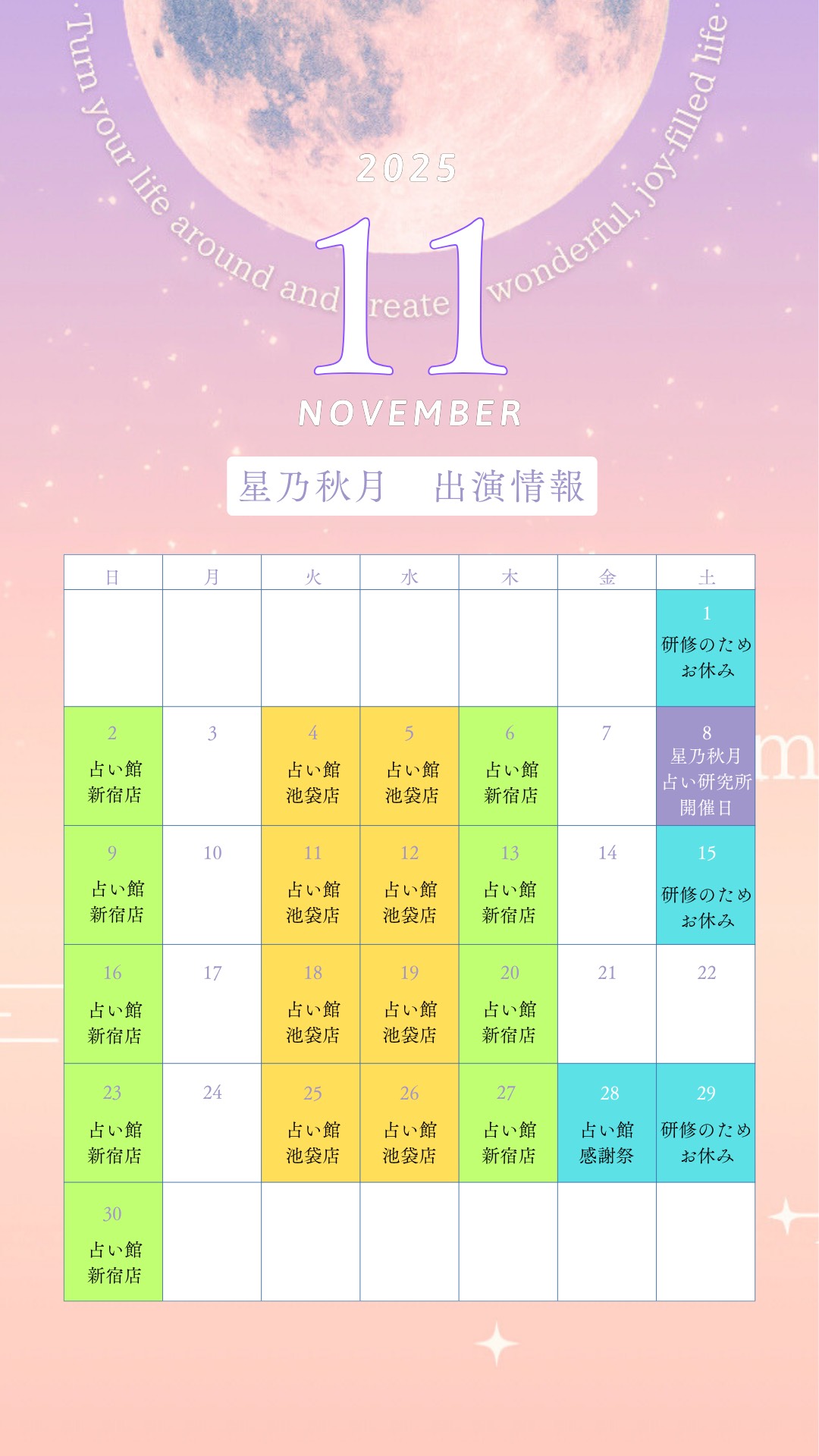 2025年11月のスケジュール