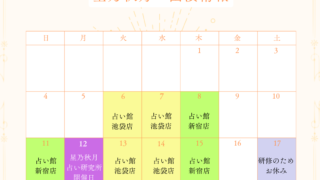 お知らせ 今年もよろしくお願いします。26年1月スケジュール公開! こんにちは、星乃秋月です!新年あけましておめでとうございます。昨年は研究所がオープンとなり、多くの方に大変お世話になりました。今年もどうぞよろしくお願いいたします。今月のスケジュールはこちらです!〇占い研究所「星の遊覧船」オープン情報・1/... 2026.01.06 お知らせスピリチュアル出演情報